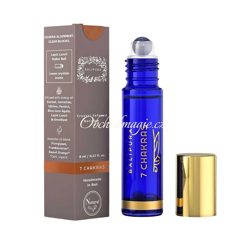 Roll-on je během 21 nocí nabíjen mocnými energiemi krystalů (Lapis lazuli, granát, karneol, citrín, olivín, modrý krajkový achát a ametyst). Očištěn a zasvěcen během speciálního rituálního obřadu na Bali.