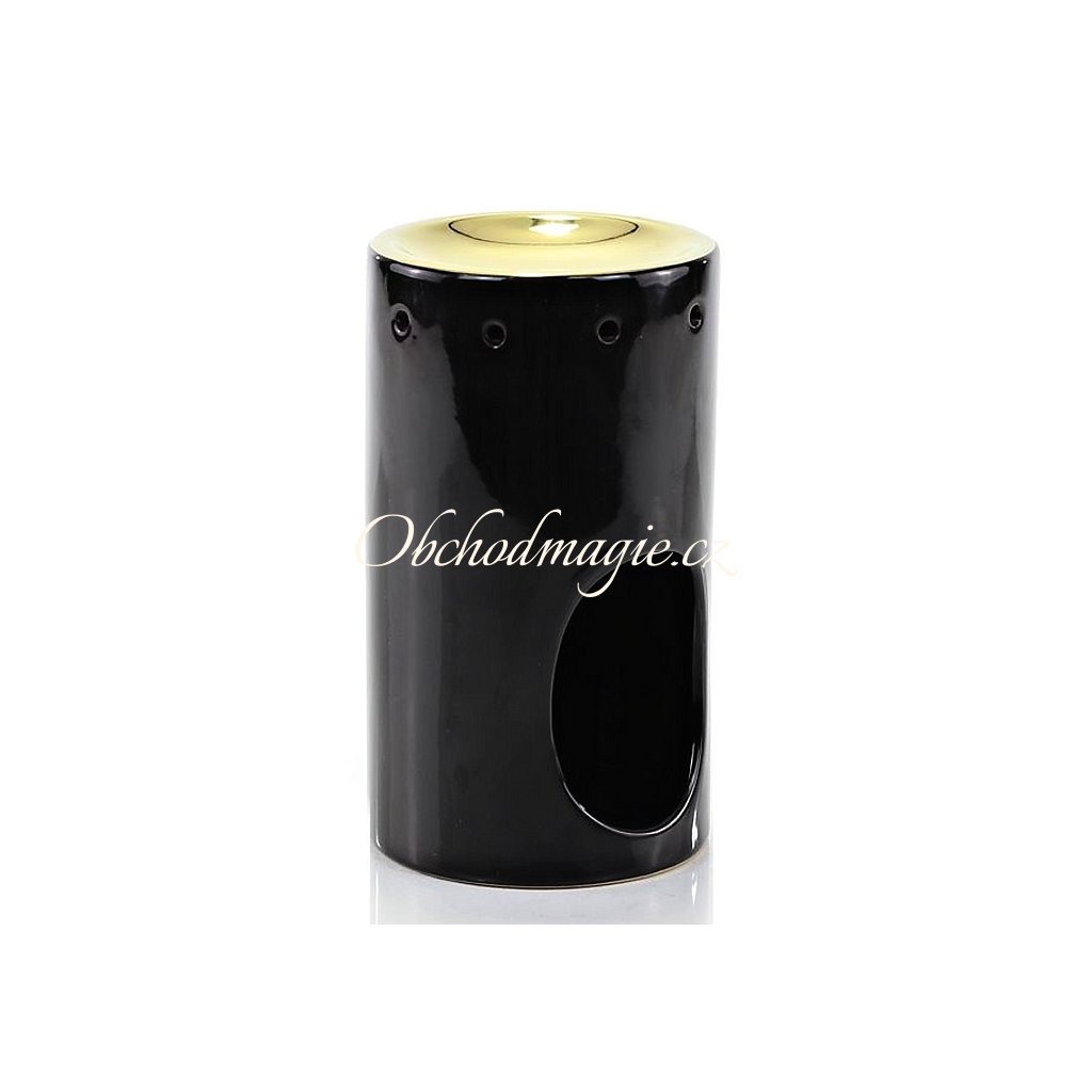 - vyrobena z pevné a odolné glazované keramiky černé barvy a zlatým kalíškem na vosk nebo olej