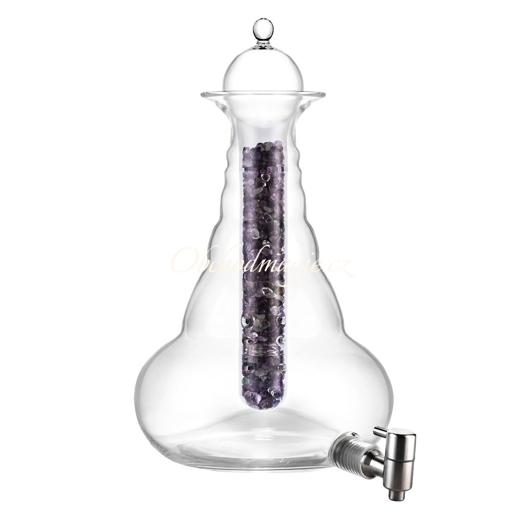 - demižon má uprostřed skleněnou vložku, do které lze přidat led na ochlazení nápojů, nebo drobné drahé kamínky, minerály, šungit a jiné energetizující prostředky, které vaše nápoje ještě více posílí