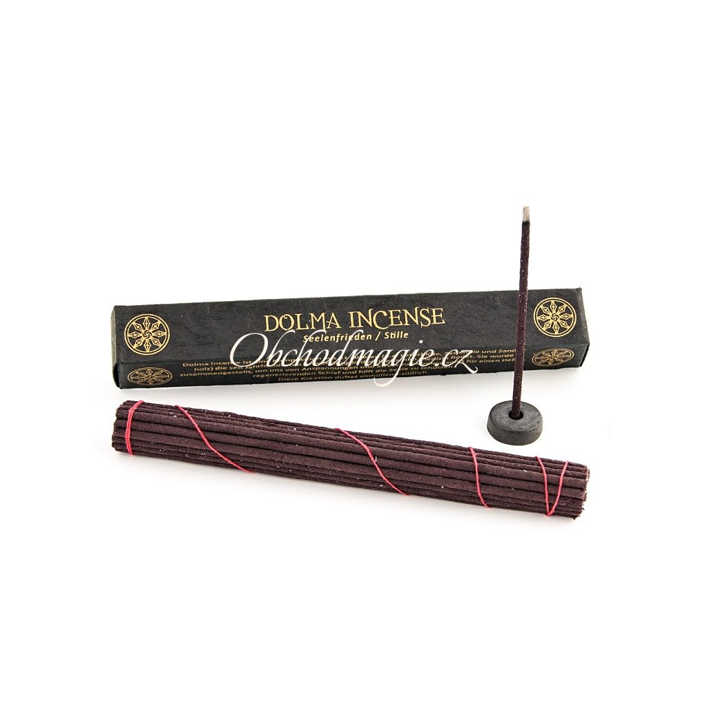 Dolma vonné tyčinky jsou směsí 31 složek (např. santalové dřevo, lotus, smilax lékařský), které se po staletí používají v tibetské medicíně. Jejich nasládlá vůně nás očistí od každodenního stresu, osvobodí nás od napětí a pomůže tak nalézt duši vnitřní klid. Má regenerační účinky, harmonizuje, vitalizuje, navozuje hluboký mír.
