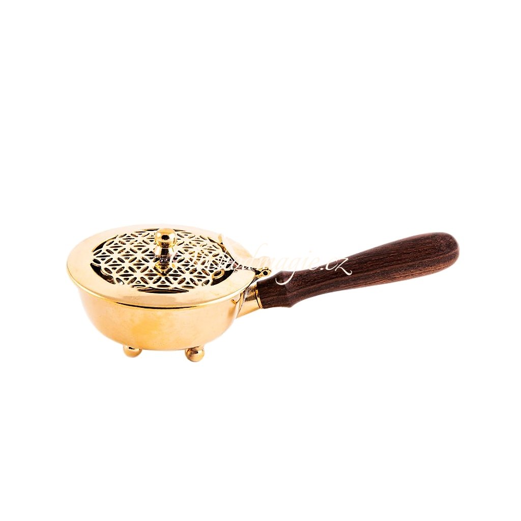 Kadidelnice KVĚT ŽIVOTA s rukojetí gravírovaná mosaz