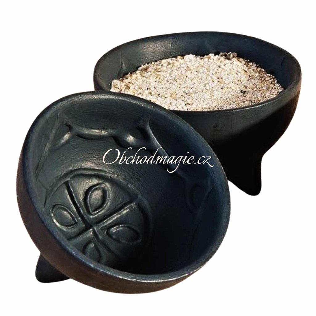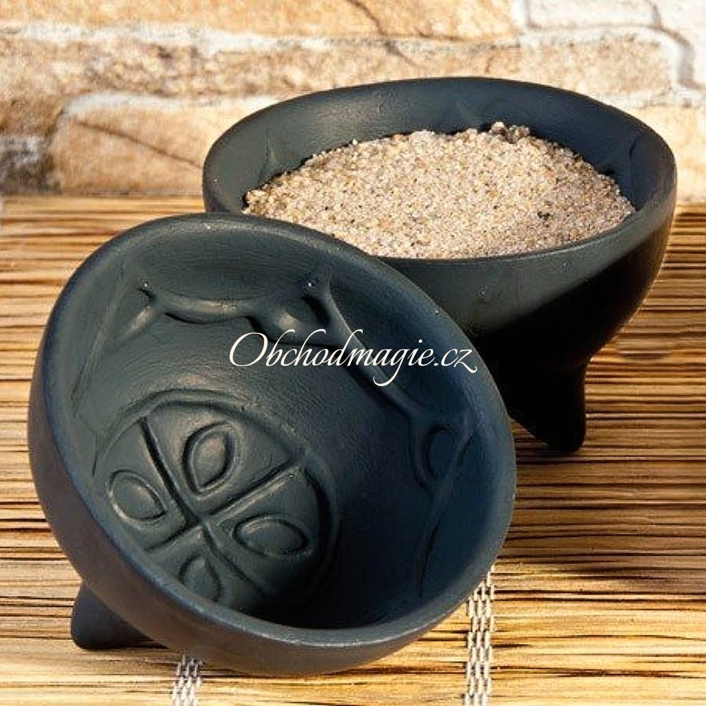 Každá miska je pečlivě tvarována, aby zachovala přírodní vzhled terakotové keramiky. Její dno je umně zdobeno mystickými přírodními symboly, které vás přivedou do spojení s prastarou energií přírody. Miska je umístěna na třech izolačních nožičkách, což nejen dodává eleganci, ale také chrání povrch pod ní.