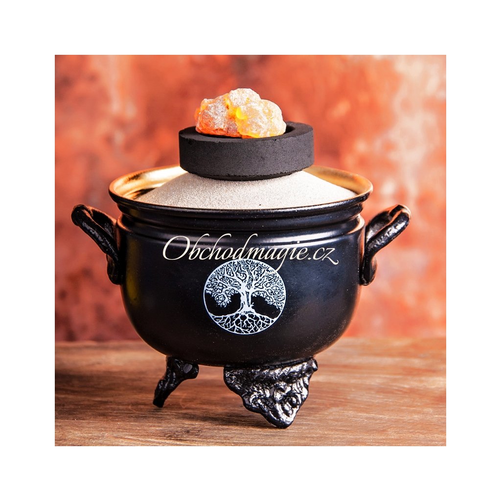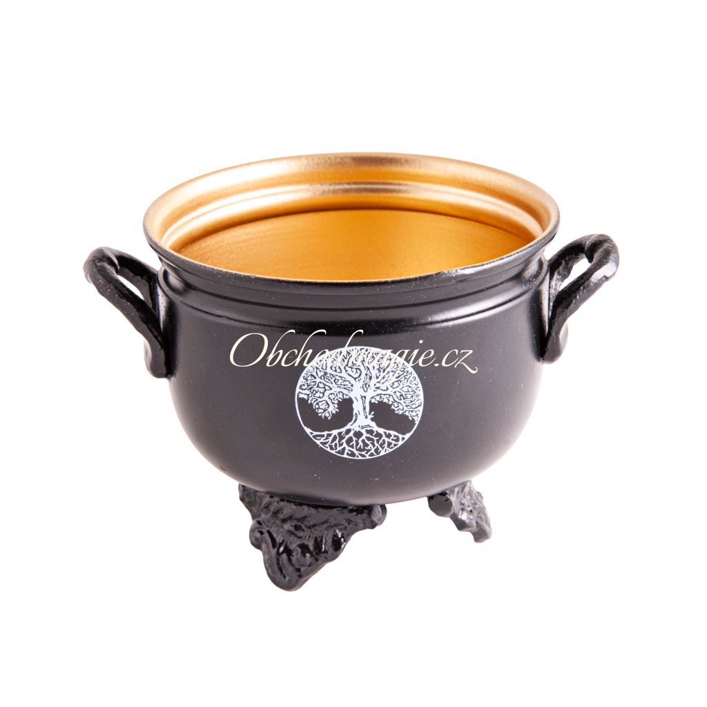 - lehčí železný kotlík s magickým kouzlem, uvnitř zlacený zlatou barvou, která dodá vašemu vykuřovacímu obřadu mystický nádech