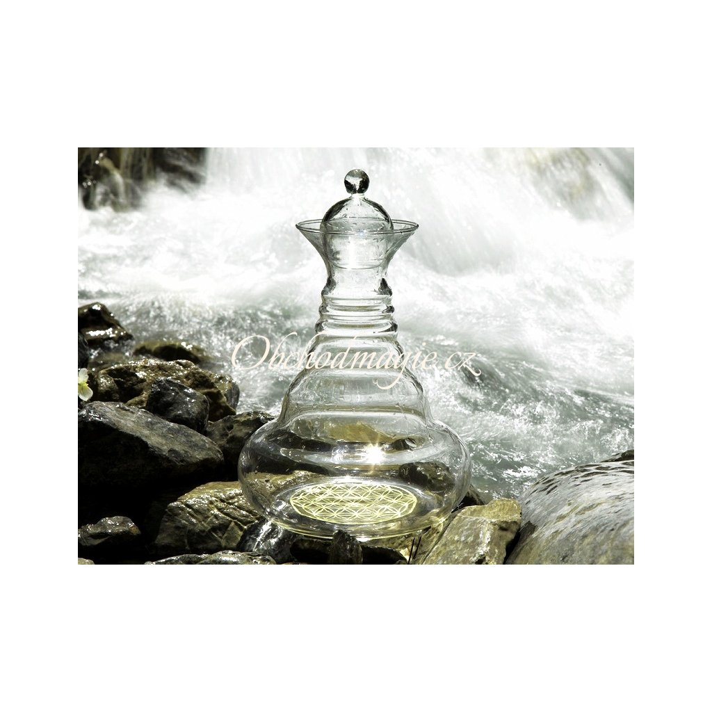 - na dně karafy je 24 karátovým zlatem vypálen posilující a energetizující symbol posvátné geometrie - Květ života, který se od dob starověku používá k vitalizaci nápojů a pokrmů
