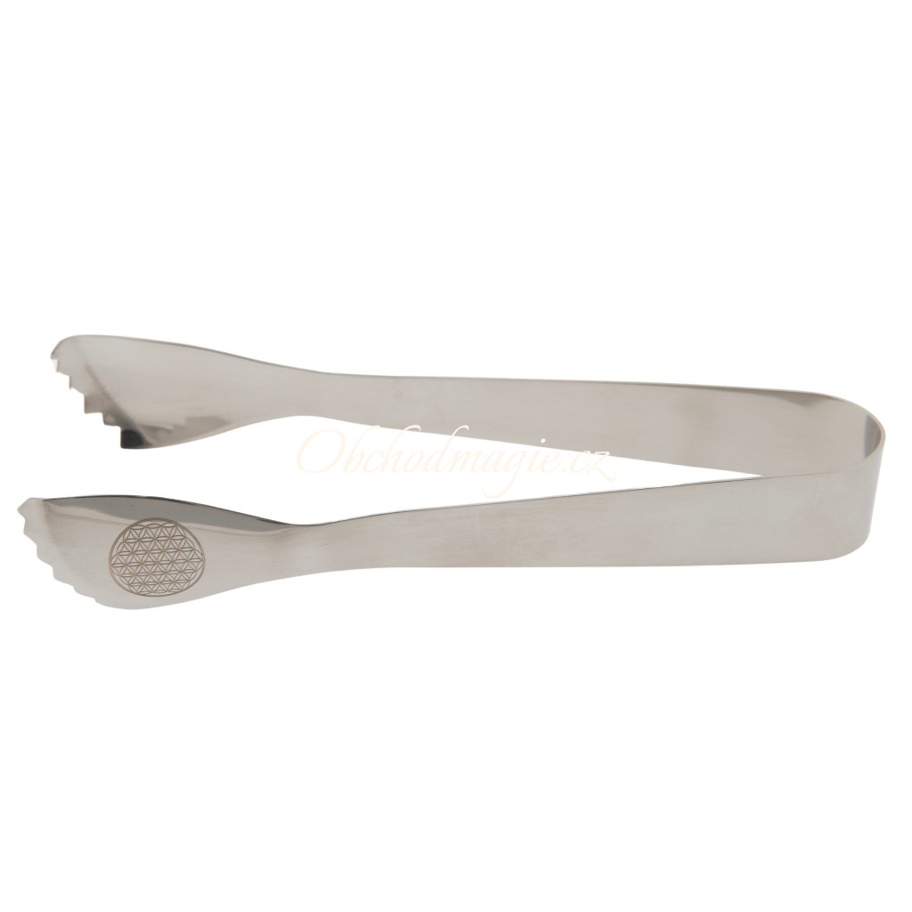 Kovové KLEŠTĚ NA UHLÍKY s KVĚTEM ŽIVOTA stříbrné