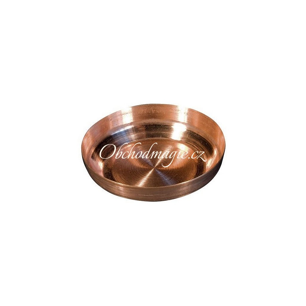 Měděná miska na obětní rýži, určená pro ohňový rituál Agnihotra. Rýži spolu s máslem Ghí smíchejte v této měděné misce.