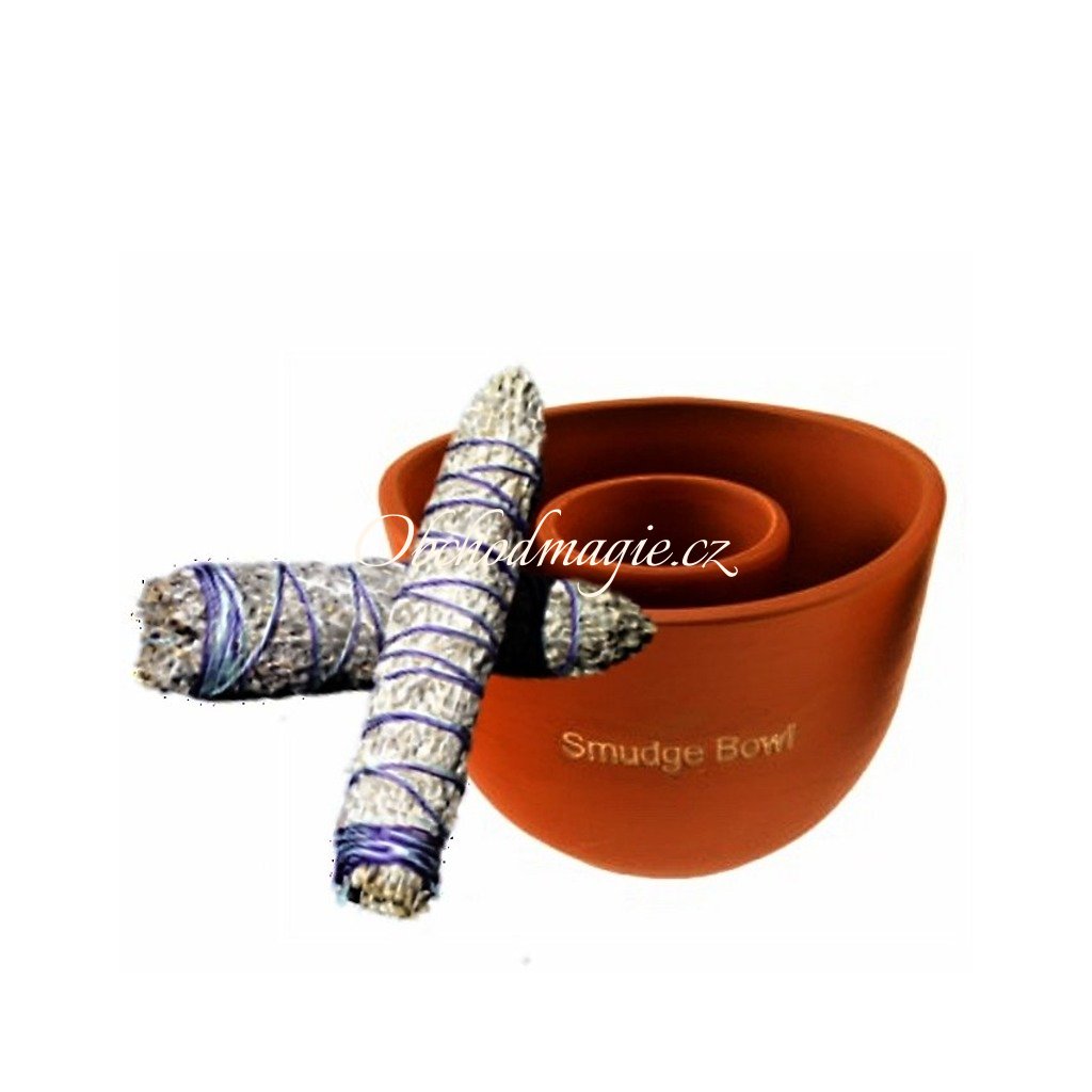 Praktická vykuřovací miska Smudge Bowl je speciálně určená pro pálení šamanských bylinných svazků. Spálené bylinky a žhavý popel spadnou přímo do misky a nezůstávají tak na podlaze.