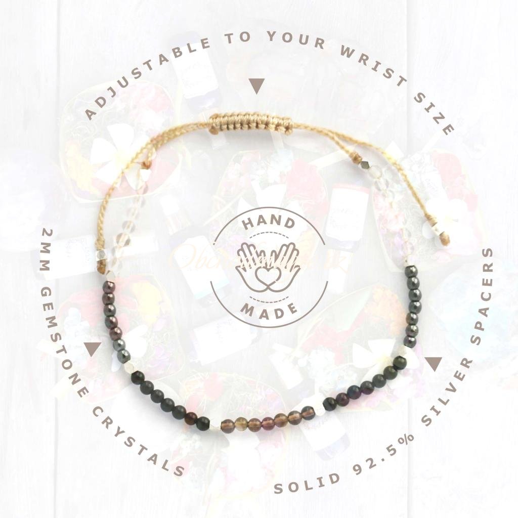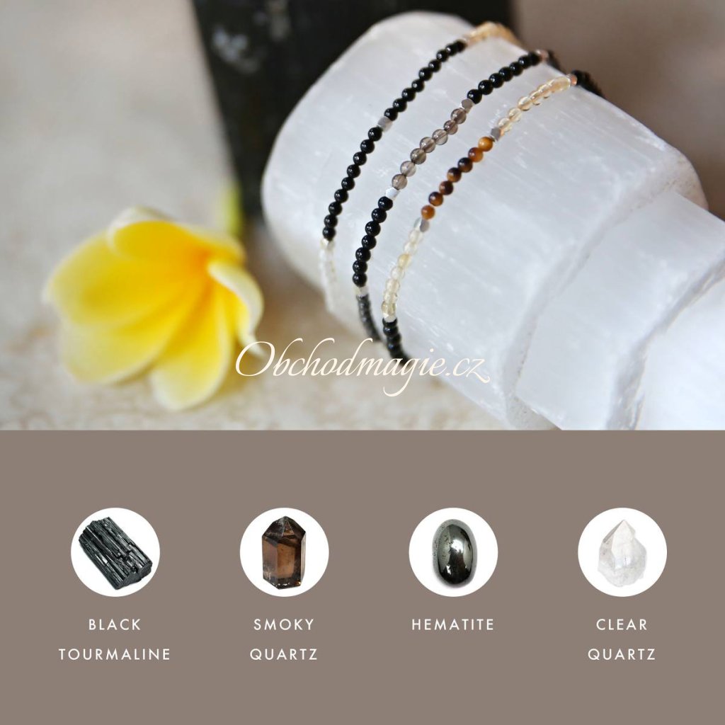 Náramek obsahuje turmalín, kouřový krystal, hematit a křišťál – silné a osvědčené kameny známé svou schopností uzemňovat, chránit a posilovat. Každý kámen byl harmonizován čisticím protokolem Balipura, nabit pod energiemi živlů a požehnán balijskou kněžkou během úplňku. Tento proces zaručuje, že každý náramek je nabit pozitivní energií a připraven sloužit vám v každé situaci.