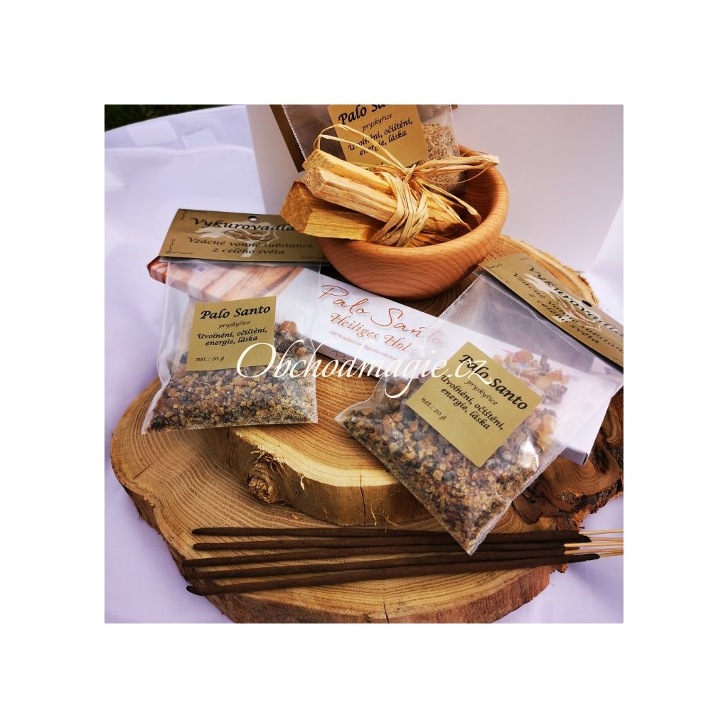 - Palo Santo (lat. Bursea graveolens) je, jak název napovídá, posvátné dřevo z JIžní Ameriky. Roste hlavně v Peru a amazonském pralese.