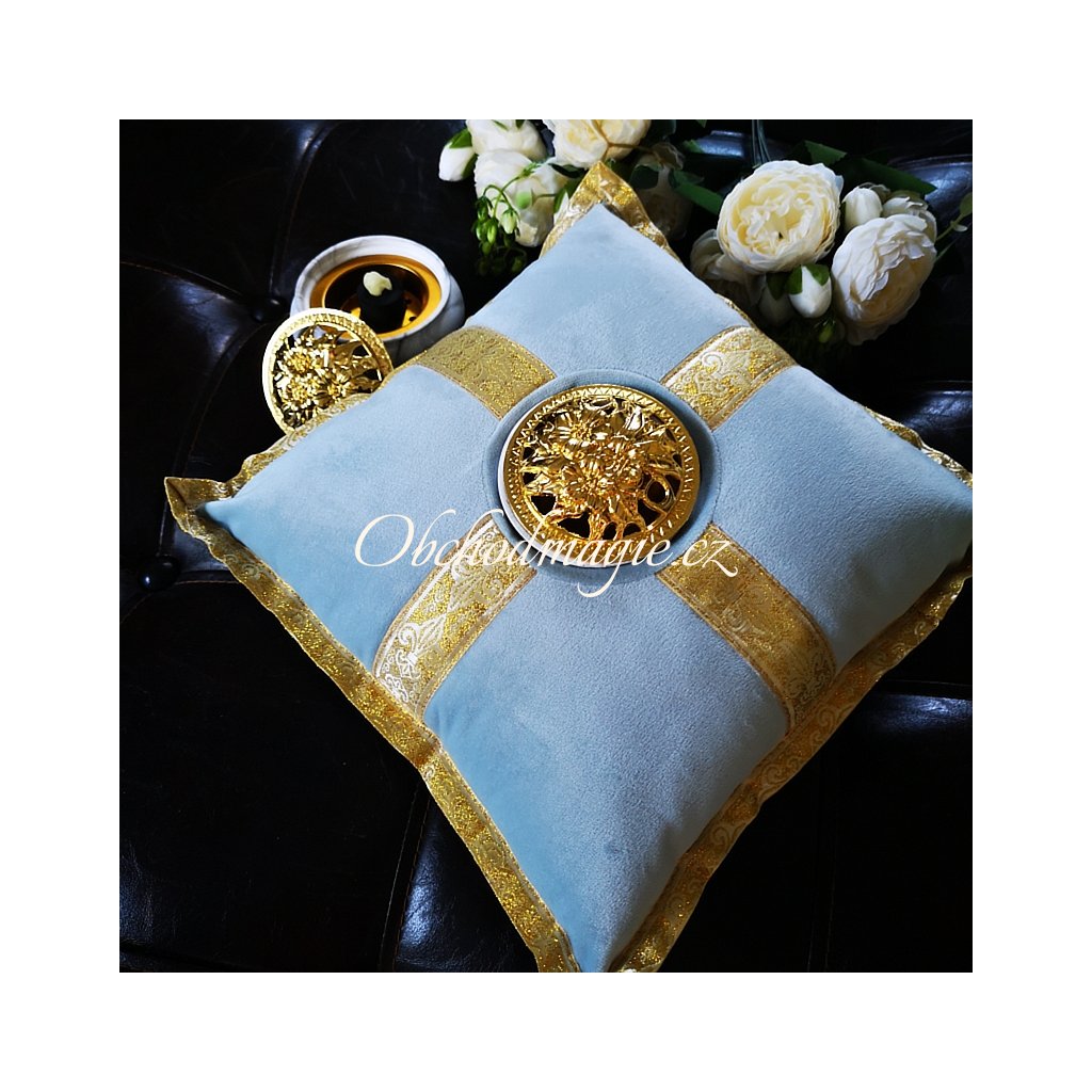 - polštář z měkkého balvněného sametu a bavlněnou výplní, zdobený zlatými lemy má uprostřed otvor, do kterého se vkládá keramická kadidelnice