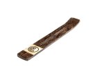 Estetický a vysoce kvalitní stojánek na vonné tyčinky ve tvaru lyže z bílého mramoru s ozdobným diskem z akáciového dřeva, na kterém je jemně vylaserován posvátný symbol Květ...