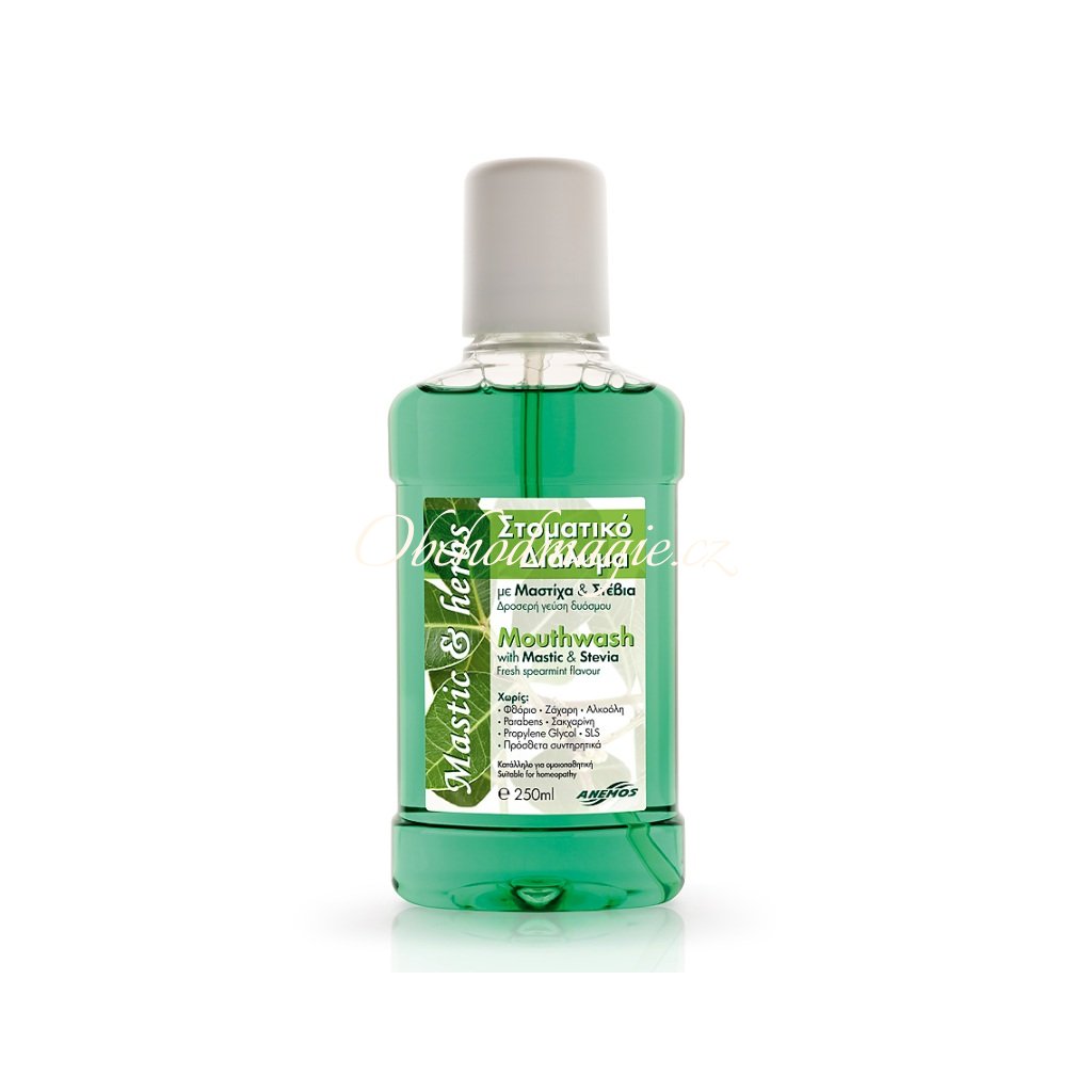 Ústní voda bez fluoru a alkoholu s mastixem, stévií a mátou