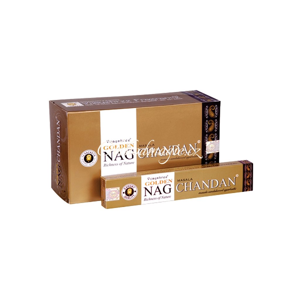 Vonné tyčinky ze zlaté řady Nag Champa se vyrábějí ručně v Bangalore v Indii a jsou velmi specifické svým složením. Jsou vyrobeny ze 100% přírodních ingrediencí nejvyšší kvality, zcela bez chemických přísad. Skládají se z jemné směsi koření, bylin, santalového dřeva, květinových výtažků, olejů a polotekutých pryskyřic obsahující indickou plumérii (jinými názvy Nag Champa, Frangipani) a velmi vzácnou pryskyřici z "Nebeského stromu" Haalmaddi (Ailanthus triphysa).