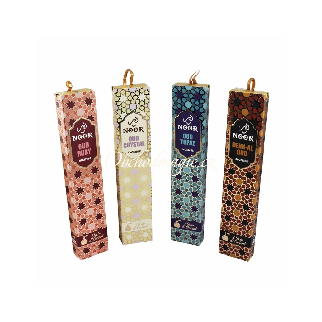 Ručně rolované prémiové vonné tyčinky kolekce Noor Oud Elixir d'Orient pochází od předního výrobce nejkvalitnějších indických tyčinek - Hari Darsham. Jsou založené na nejdražší a nejvzácnější parfémové substanci na světě - agarovém (oudovém) dřevě a zvou vás k objevení kouzla tajemného Orientu.