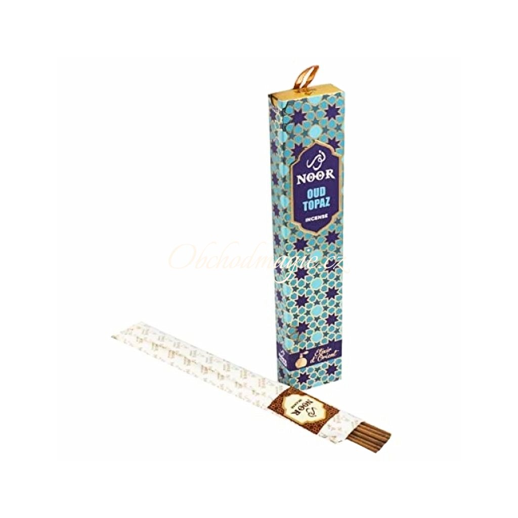 Noor Oud Topaz je magickou kombinací příjemných, exotických a kořeněných tónů. Výrazná vůně šafránu je posílená smyslným pižmem, svěžím vetiverem a sladce balzamickými tóny ušlechtilých dřev.