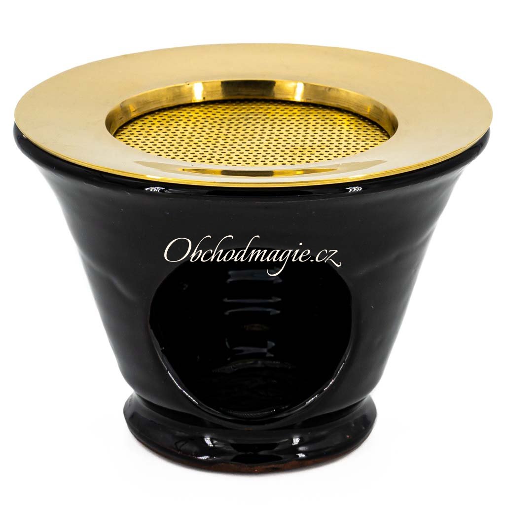- včetně prvotřídního mosazného síta zlaté barvy, díky kterému na ní můžete vykuřovat všechny druhy vykuřovadel - od kadidel, pryskyřic, vonných směsí, dřev, bylin, až po vonné františky a malé spirály